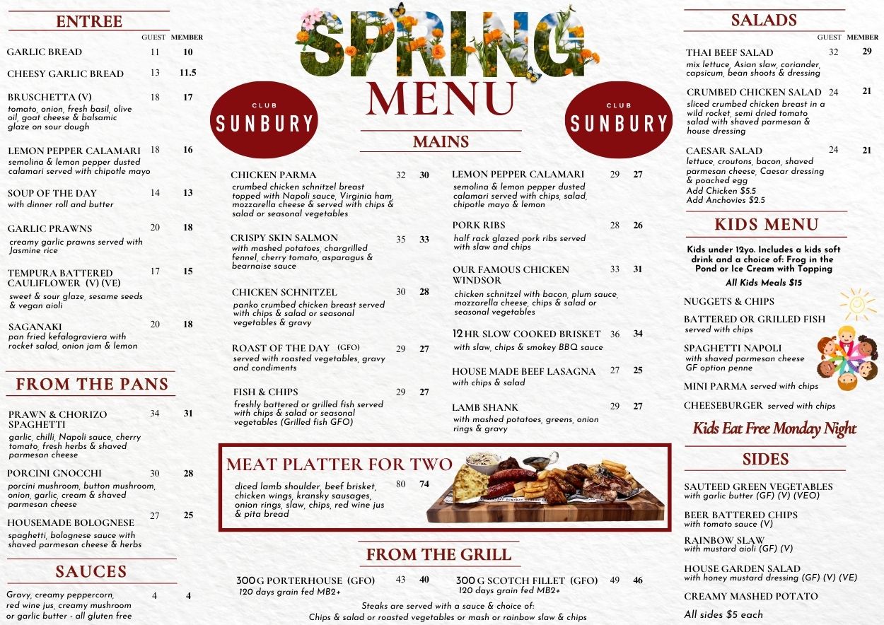 There is something for all tastes and everyone to enjoy here at Club Sunbury. Options include traditional roasts, steaks & seafood.